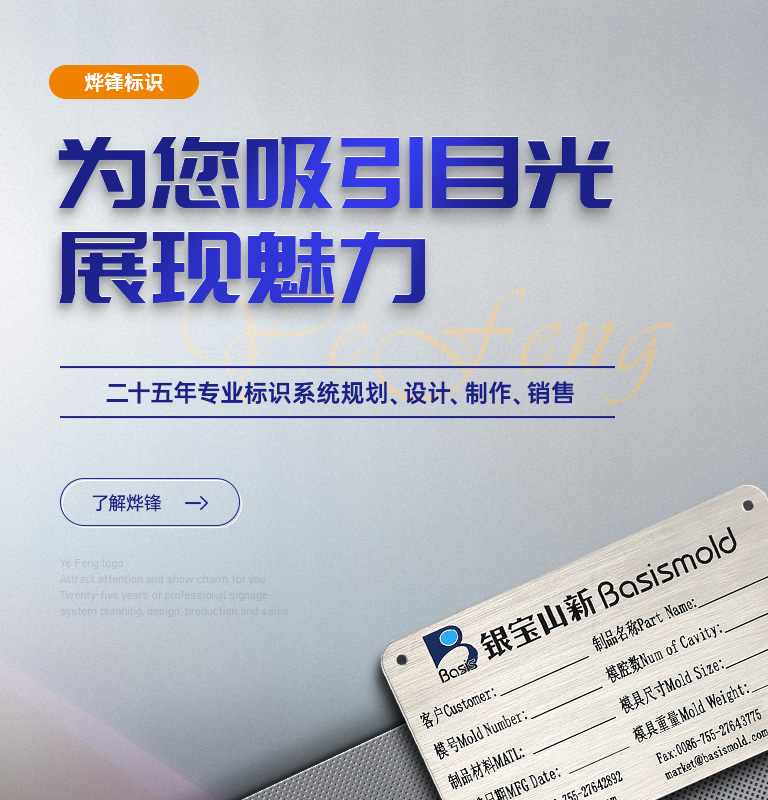 廣東燁鋒五金塑料科技有限公司是一家專業(yè)從事銘牌制作、不幹膠標(biāo)識(shí)産品等標(biāo)識(shí)系統(tǒng)規(guī)劃、設(shè)計(jì)、制作、銷售的專業(yè)標(biāo)識(shí)服務(wù)企業(yè)。本公司創(chuàng)始于1997年,于2008年8月正式更名為燁鋒五金塑料科技有限公司,座落于佛山市順德區(qū)杏壇鎮(zhèn)康寶華騰工業(yè)園,有著25年的豐富行業(yè)經(jīng)驗(yàn)。公司自成立以來(lái)已完成多個(gè)項(xiàng)目,擁有專業(yè)的設(shè)計(jì)師、銷售團(tuán)隊(duì)、大型生産基地,實(shí)現(xiàn)了標(biāo)識(shí)系統(tǒng)生産的專業(yè)化、標(biāo)準(zhǔn)化、規(guī)模化。現(xiàn)擁有一流的電液同步數(shù)控折彎?rùn)C(jī)、自動(dòng)折彎工作戰(zhàn)、卷料切割機(jī)、自動(dòng)絲印機(jī)、倒角機(jī)、送料機(jī)、冷水機(jī)、塗裝自動(dòng)生産線、烘幹機(jī)、智能化絲印機(jī)、全自動(dòng)剪闆機(jī)等設(shè)備。